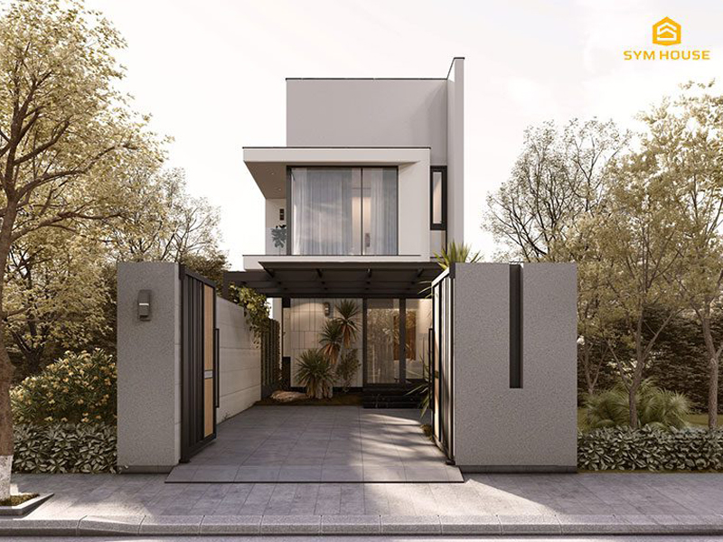 Mặt tiền của ngôi nhà phố 2 tầng AA’s House được Sym House thiết kế với sự cân nhắc tỉ mỉ, tạo nên một vẻ đẹp hiện đại và ấn tượng ngay từ cái nhìn đầu tiên. Bề ngoài của ngôi nhà thường được lựa chọn từ các vật liệu chất lượng cao như gạch, đá kết hợp với vật liệu khác như gỗ và kính, tạo nên sự hài hòa giữa sự cứng cáp và tính thẩm mỹ.